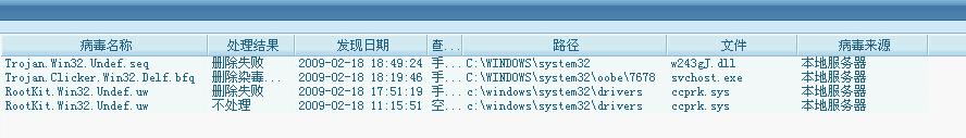 今天下午刚升级的病毒库,发现了4个病毒,只删除了一个,其他无法处理,360的也无法粉碎病毒文件,急。。。。。。求斑竹大虾们帮帮忙
