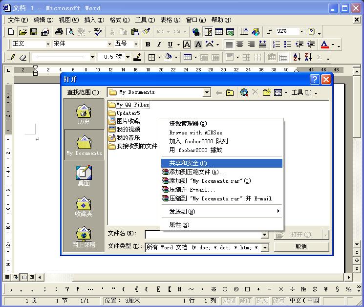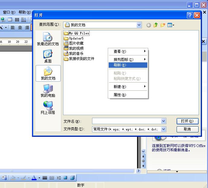 启动word,点击打开,在目标文件夹里右键,没有排列图标、新建文件夹、刷新、属性等选项。而出现了:资源管理器、添加到压缩文件、发送到等选项。尝试了几台别的机子,都是正常的。杀毒、360、重装OFFICE都不成,怎么办啊?