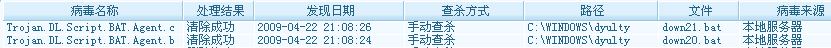 www.hjy007.cn。于是我又尝试着卸载IE7后,安装IE8,可是安装完后有个插件导致IE8崩溃,无奈之下卸载IE8后,再次安装IE7,可是打开IE7还是那个黄金眼007网址出现在眼前。用卡卡安全助手都无法修复其主页。最后不得不将桌面的IE以及与IE相关的文件全部统统删除,导致了我开机无法显示图标,最后只有修复系统,等系统修复完之后,打开IE就没有出现那个黄金眼007网址了,总算松了口气。今早我又用最新版本的21.35.24的杀毒软件全盘查杀了电脑,没有发现病毒。这是我修复系统之后,扫描的日志,请高手帮忙看一下有没有问题?