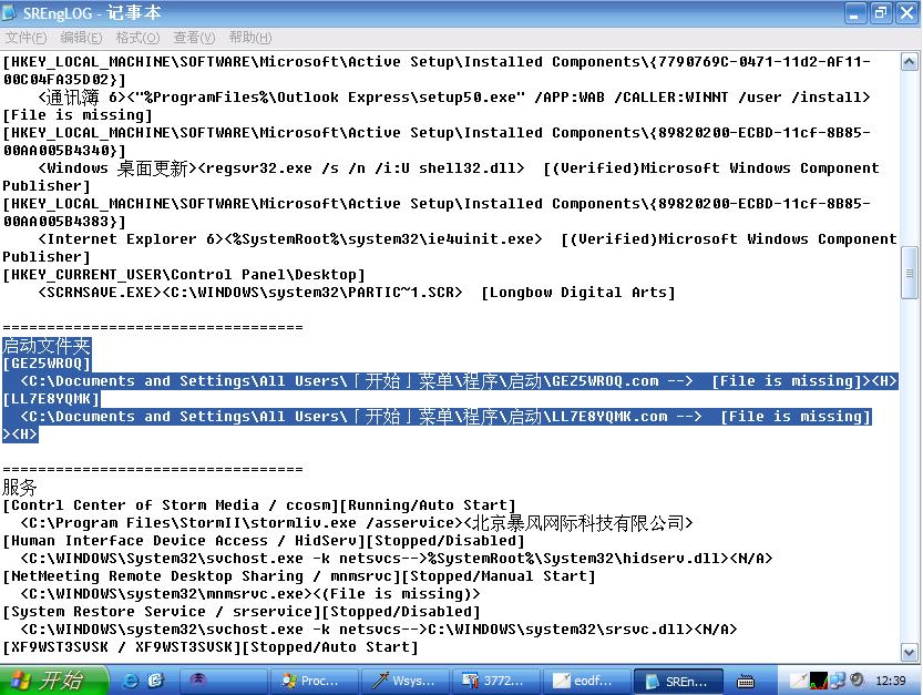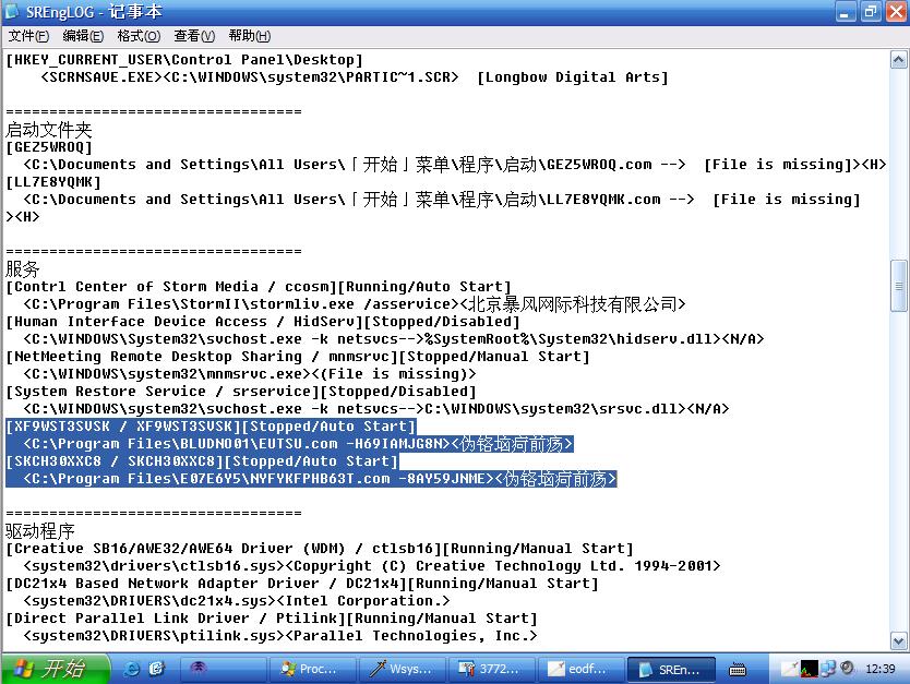 这两个文件开机时,会自动加载开机运行程序到 开机启动项,自动加载两个程序到任务管理器,加载后,任务管理器 不能打开,瑞星软件不能打开。