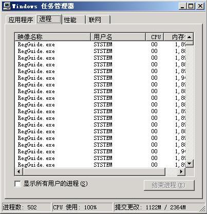 回复:大量regGuide.exe 进程,cpu 100%
