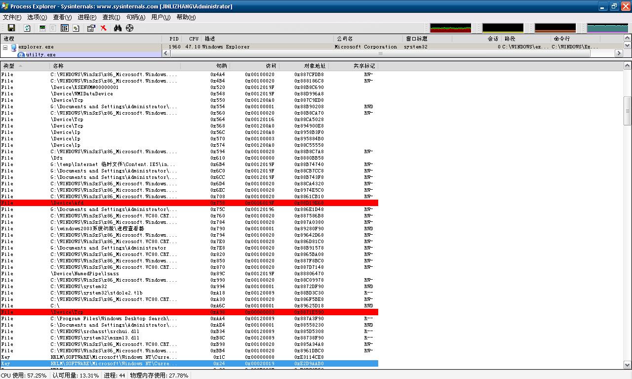 看一下explorer.exe被注入了哪些模块,显示DLL,不要显示句柄。