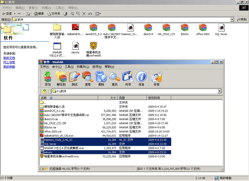 还有我想看用WinRAR打开那位置,看那几个文件夹还在吗??