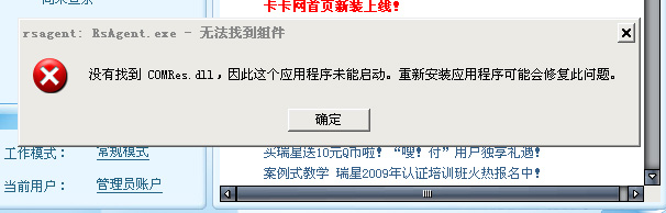 去找相同系统的comres.dll文件,复制放到你的系统C:\WINDOWS\system32\文件夹内即可