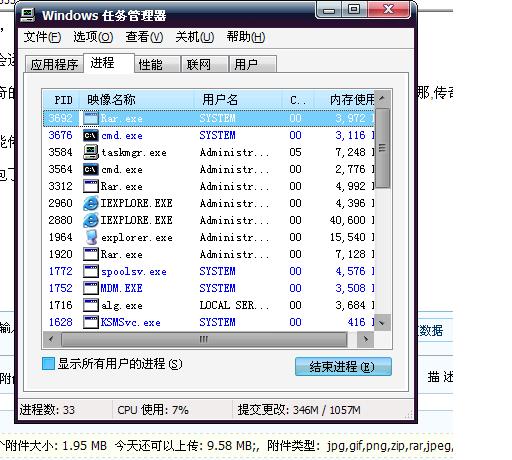 然后又用360kill 顽固木马专杀大全..查杀的什么我忘了..总只没查杀到cmd.exe rar.exe 数字+xeex.exe 这些东西。
