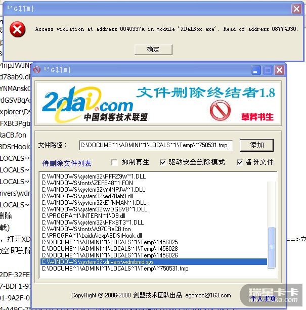 打开费尔木马强力清除助手,点选“抑制文件再生”删除下面文件。