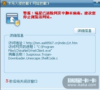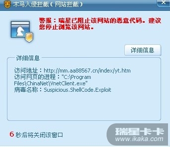 星空极速拨号后,瑞星提示木马攻击,咋整?