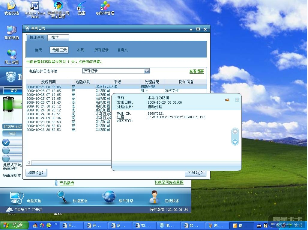 杀软用的是瑞星2009,这两天已经升级2010版本,开机后提示木马行为防御,危险程度高。怎么处理它呢?每次开机都会出现。瑞星倒是进行了自动处理,怎么才能处理干净呢?在C:\WINDOWS\SYSTEM32\RUNDLL32.EXE;怎么处理它?先谢过!