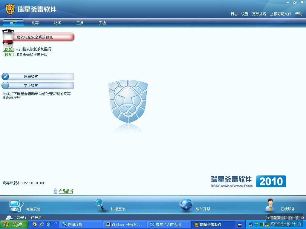 回复:修复杀毒,显示安全系数低,需要升级和补丁系统漏洞,可现在没有级可升啊??怎么会报需要升级呢?