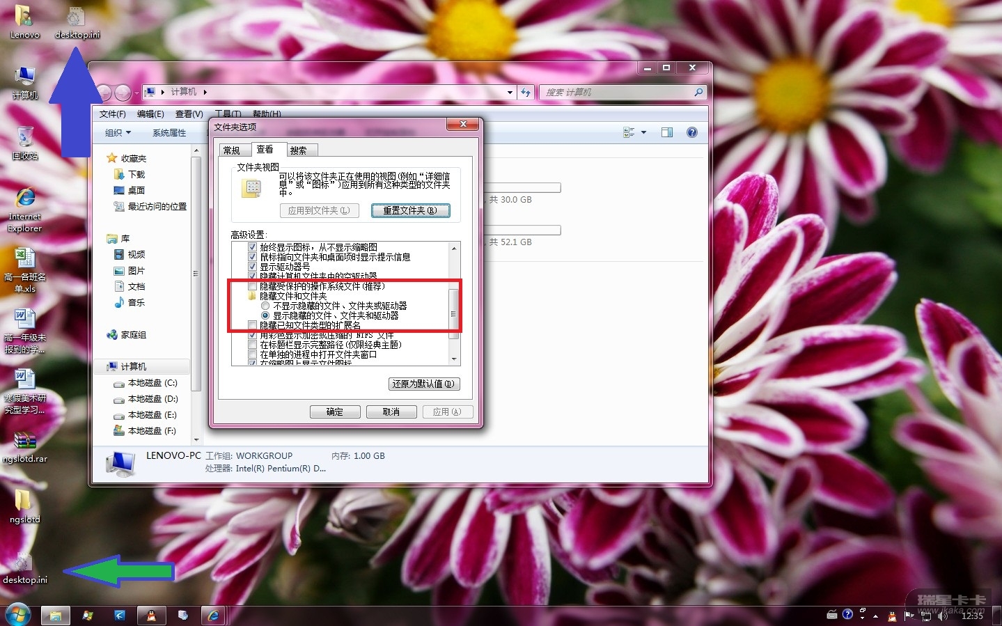 开机的时候会很长时间 期间屏幕上有很多英文(对不起 我不是很懂没法说明白) 到桌面后就多出来两个desktop文件