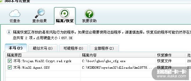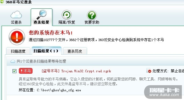 今天用360查到了这个Trojan.Win32.Crypt.rad.rgrk病毒 原图如下