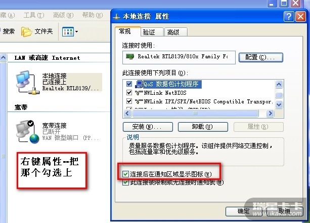 我最近发现我的宽带连接成功后,右击桌面连接图标,就没有断开的选项了,没法断开,桌面右下角也不在出现两个闪动小电脑的标志,声音的小喇叭标志也没了,网上邻居里宽带连接图标旁有锁头标志,这正常吗?请教各位。谢谢。