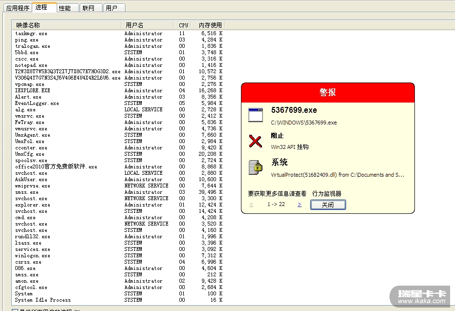 另外,昨天我把他说的那个office拿过来,我机子上没有hips,就把瑞星主防开到最高跑了一下,确实挺变态的,不过没发现vbe的行踪。。。。。。。母体病毒瑞星不报毒,跑的之后报一些已知病毒的释放和部分未知木马。下载软件安装。母体病毒已上报,上报号