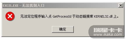 无法定位程序输入点getprocessid于动态链接库KERNEL32.dll上