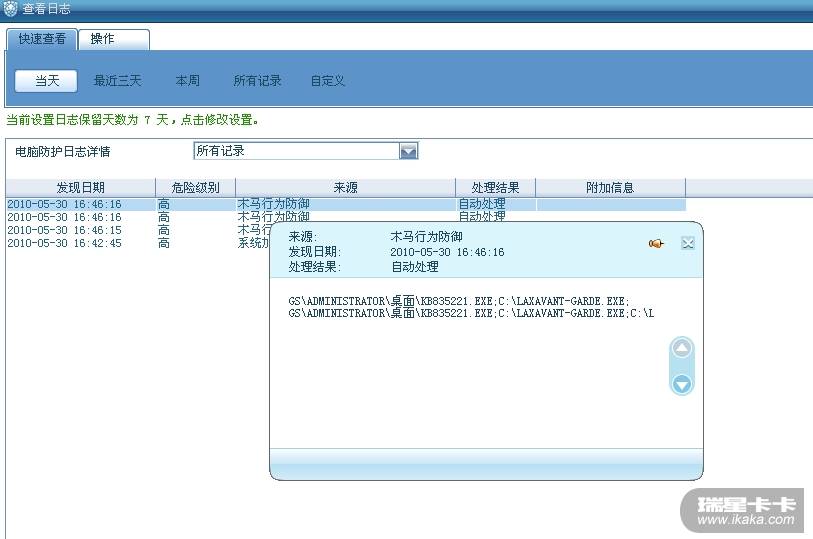 RIS2010 最新病毒库扫描你的样本————不报毒;但RIS2010的 主动防御可以拦截此病毒释放的病毒程序。