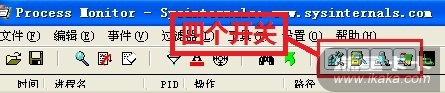 操作总共分4大类,注册表、文件、网络、进程,工具栏上对应着4个开关。
