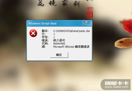今天上QQ 有朋友问我某个VBS缺少语句,我估计可能是中病毒了,就让他下载杀毒软件杀毒,有趣的是今天我打开电脑,发现自己的机子开机后也出现了这个情况.....