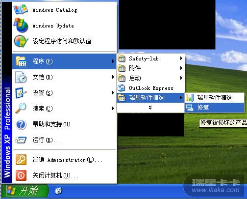 用鼠标点击“开始”——“程序”——“瑞星软件精选”——“修复”