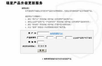 (2)使用“产品序列号”和“用户ID”到瑞星官方网站下载升级程序进行升级(产品序列号、用户ID见用户身份卡)这两种方法升级?