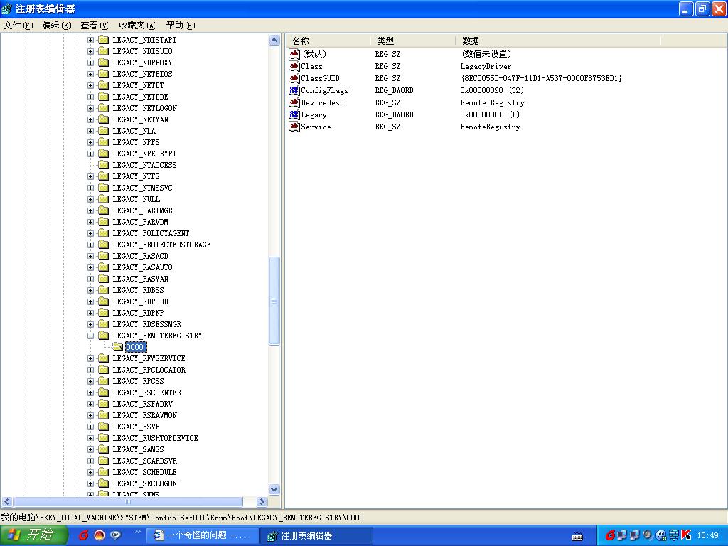 注册表里有啊,而且跟你贴的一模一样,可为什么在控制面版,计算机管理的服务里没有他呢,奇怪S啦