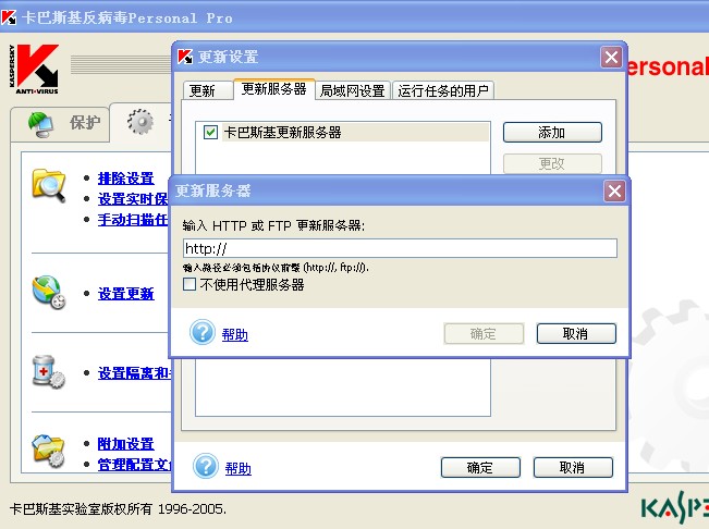 我们学校的网络只能上国内网,使得卡巴不能升级,我想问下有没有方法可以使卡巴升级.我用了代理服务器,但是还是不行.