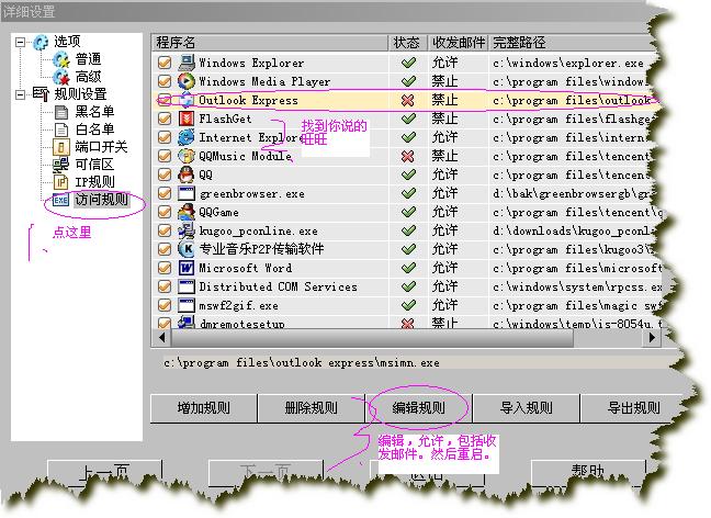 经过你们的指导,我已装好2006瑞星杀毒和防火墙,但是,淘宝旺旺却无法再登陆了。我在防火墙的访问规则里,设置允许淘宝旺旺连接网络.......每次旺旺登陆时,瑞星都提示是否放行?可是我点击允许放行,旺旺还是登不上去。。。。。