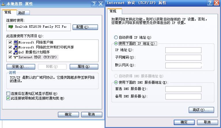 最近看到好多篇关于可以上QQ无法打开IE的,今天我就把遇到这个问题,已经解决了的方法告诉大家。其实这也不是什么病毒、IE文件损坏==。如果你遇到这个问题,先打开本地连接属性里,然后双击{Internet 协议(TCP/IP)}看看IP地址和DNS地址是否自动获取.出现这个问题大多是没有设置DNS地址所照成的,解决方法是手动设置,如果不知道IP和 DNS号码的话可以打宽带的免费服务电话.问清楚号码,然后设置.在打开IE看看