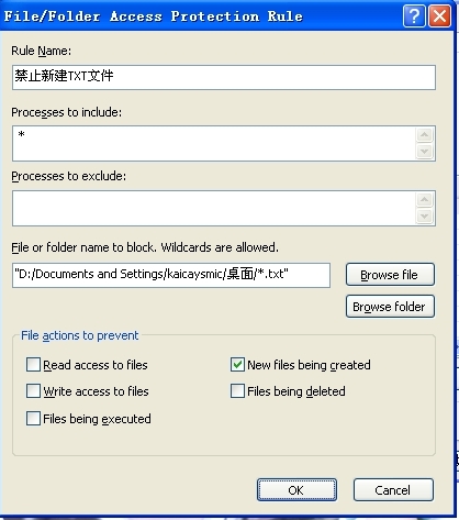 最后一个User-defined Rules才是我们在8.0i中熟悉的访问保护,点击[New],出现下列对话框: