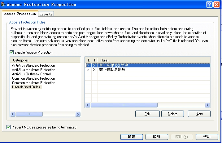 需要指出的是,从AntiVirus Standard Protection到Common Maximum Protection这5个分类中的小规则不能[新建],只能修改现有的。