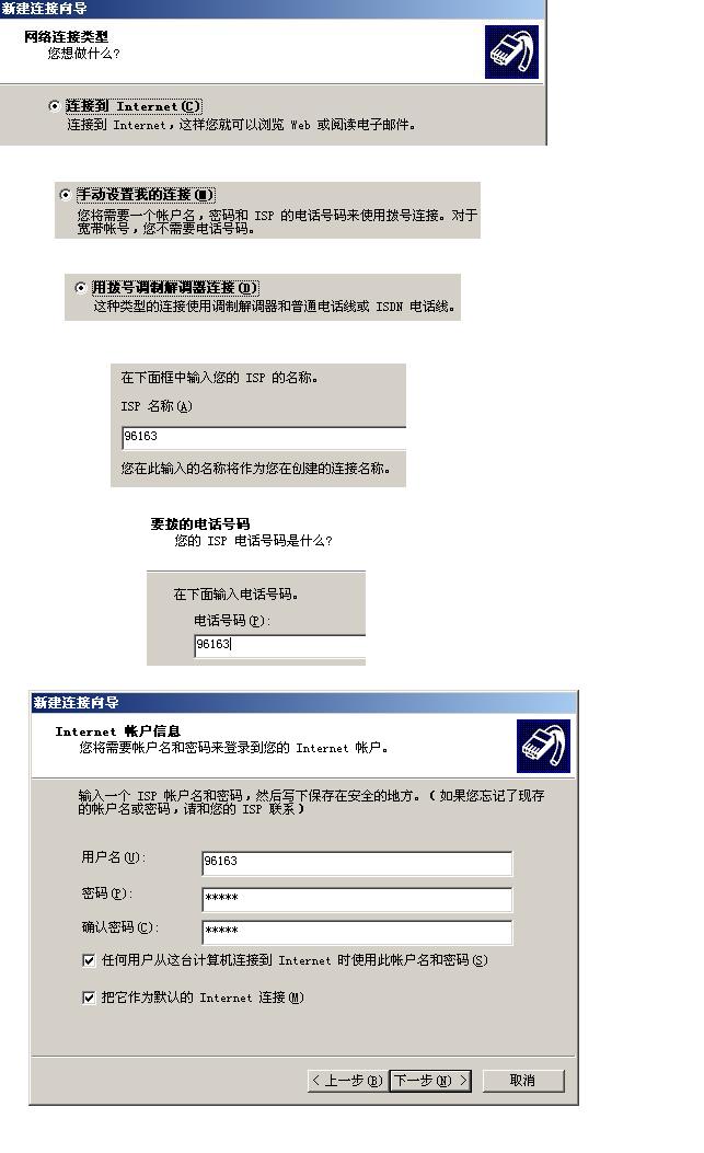 按照我的图片一步一步参考设置,辽宁96163的用户名和密码都是96163,拨的电话