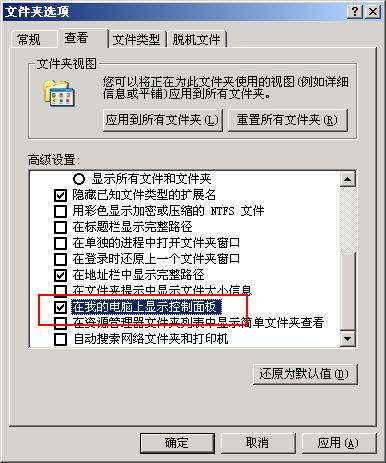 而在我自己的机子上(也是这张安装盘)双击我的电脑却只能看到A\C\D...等盘符,根本看不见控制面板,要看控制面板还是要进资源管理器......