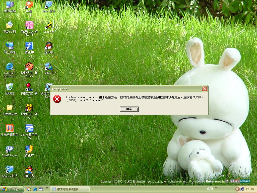 xp系统老是弹出一个对话框:windows socket error:由于连接一方在一段时间没有正确答复或连接的主机没有反应,连接尝试失败。{10060},on ATP 'connect'是什么原因造成的啊?