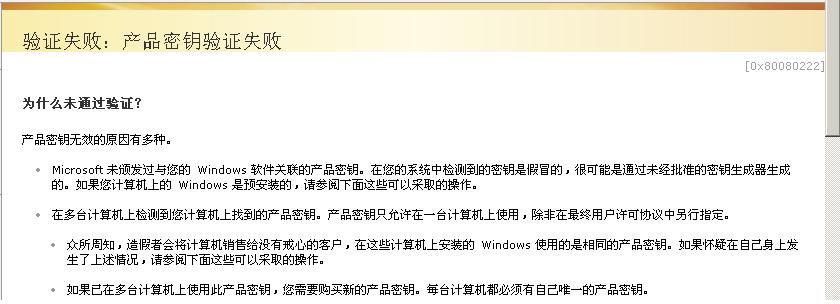 这个问题可以解决。如果你仅想为系统打补丁的话,可以使用把系统设置为自动更新,如果想跳过微软的验证可以在IE加载项里面把windows genuine advantage设置为禁用,饶过微软验证。此方法仅用于下载补丁。给你提供一个XP VLK版本的序列号“DG8FV-B9TKY-FRT9J-6CRCC-XPQ4G”,这个序列号是目前各大盗版XP专用的,我现在用的就这个绝对可以通过微软的正版验证且可以正常下载微软的正版WINDOWS增值软件。如何使用这个序列号替换原来的不用我说了吧,你可以用专用的替换软件或手动修改注册表!