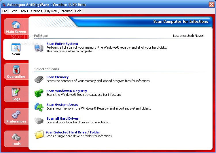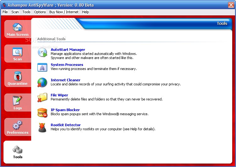 Ashampoo AntiSpyWare is a brand-new tool. Building on existing solutions combined with intelligent new strategies and algorithms it provides exceptional protection against spyware and other malware. Its advanced heuristic search and analysis system can actually identify and block new and unknown threats before they can do any damage.