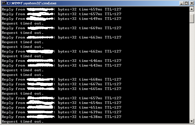 我用ping命令ping远程服务器的时候总出现这样的情况,高手说是网卡的问题,可我的网卡是集成的,现在没资金