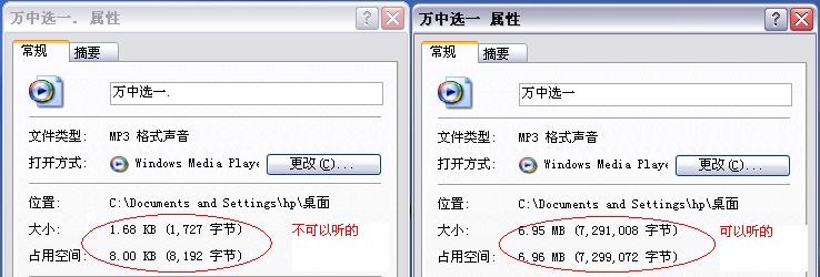 为什么的的MP3文件不一样大 请帮忙