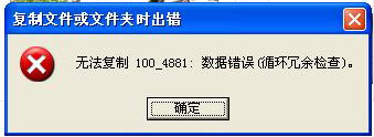大家新年好!我从光盘复制图片到硬盘,复制一半出现以下提示框,请问高手:什么意思?如何解决?