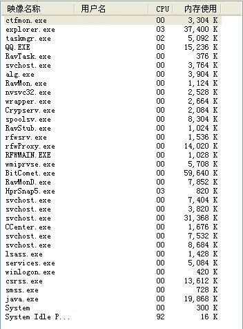 1G的内存,只开了个BT和QQ,就只剩下500M了,怎么回事啊?这是进程。。