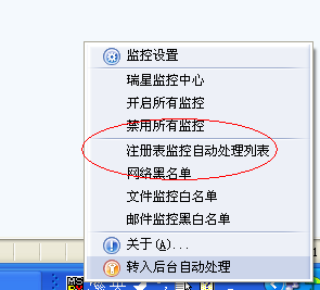 右键单击任务栏里的小雨伞点击注册表自动处理列表看看