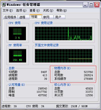 按下Ctrl+Alt+Del打开任务管理器,切换到“进程”选项卡,“内存使用”就是了。