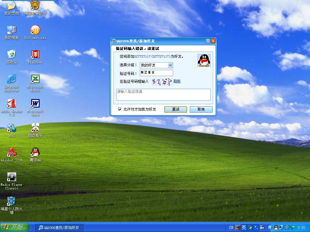 好长时间未用QQ了,不想今天装上QQ后,想加某某为好好友,在验证时却要求输入验证码,可输入后又说不对,见下图,好郁闷,请各位帮帮忙