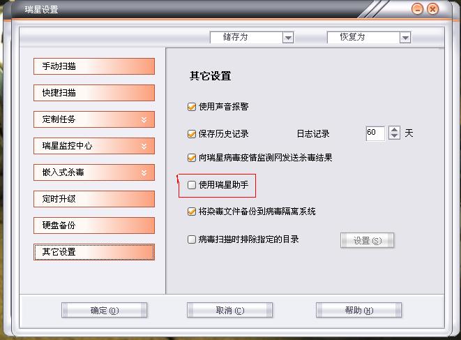 勾选瑞星助手,我按了确定的,但是还是没有用啊???