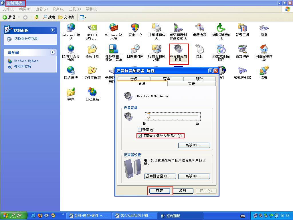 哈哈 谢谢你啊 好象是比较低级的问题哦 但是我找好久也没找到,哎,谢谢你。我可爱的小喇叭又回来了哦哦~~~~~