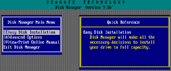 启动DM,进入DM的目录直接输入“dm”即可进入DM,开始一个说明窗口,按任意键进入主画面。DM提供了一个自动分区的功能,完全不用人工干预全部由软件自行完成,选择主菜单中的“(E)asy Disk Instalation”即可完成分区工作。虽然方便,但是这样就不能按照你的意愿进行分区,因此一般情况下不推荐你使用。