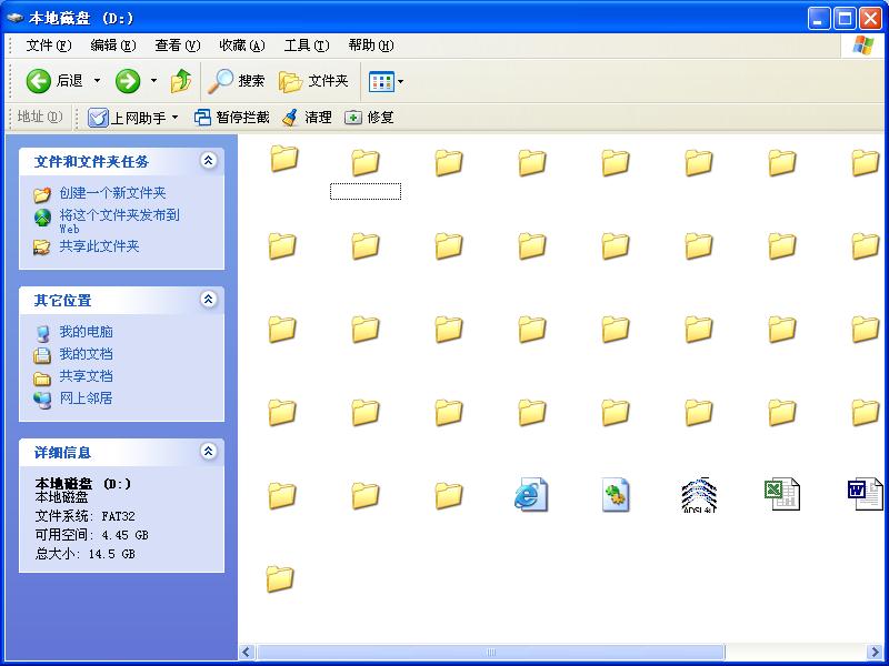 用98的时候,给文件夹加了一个背景,重装sp2后,背景没有了,但是文件名也看不见了,必须的选定一个文件夹才能看见文件名.