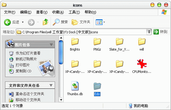 再点击“更改图标”,从出来的选择窗口选择最下方的Edo文件夹,从里面挑一个你喜欢的图标吧。