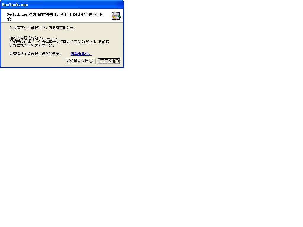 这几天突然发现自动运行瑞星的RAVTASK时会出现错误!接下来就运行什么错误什么!什么都不能做啊!谁能帮帮我啊?!谢谢了!系统重装了没用啊!