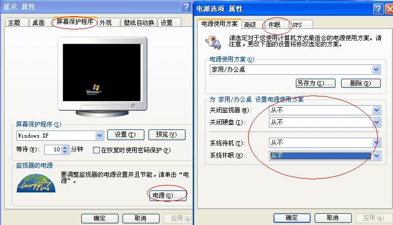 是不是屏保设置里面的"禁止监视器进入休眠状态"打上勾?