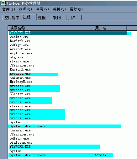 真是越来越奇怪,这和我开了系统还原有没有关系呢?我以前都是关闭系统还原的(所以不出现双胞胎进程??)~~~~~